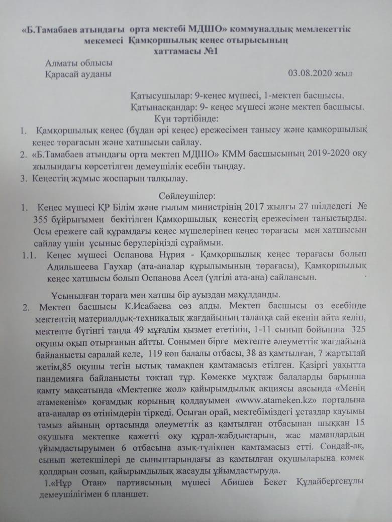 Қамқоршылық кеңес » Б. Тамабаев атындағы бастауыш мектебі